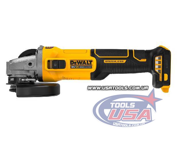 Безщіткова кутова шліфмашина з кнопкою-фіксатором 18/20В Li DeWALT DCG407N EU (каркас)