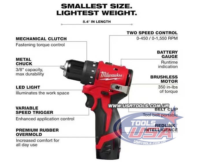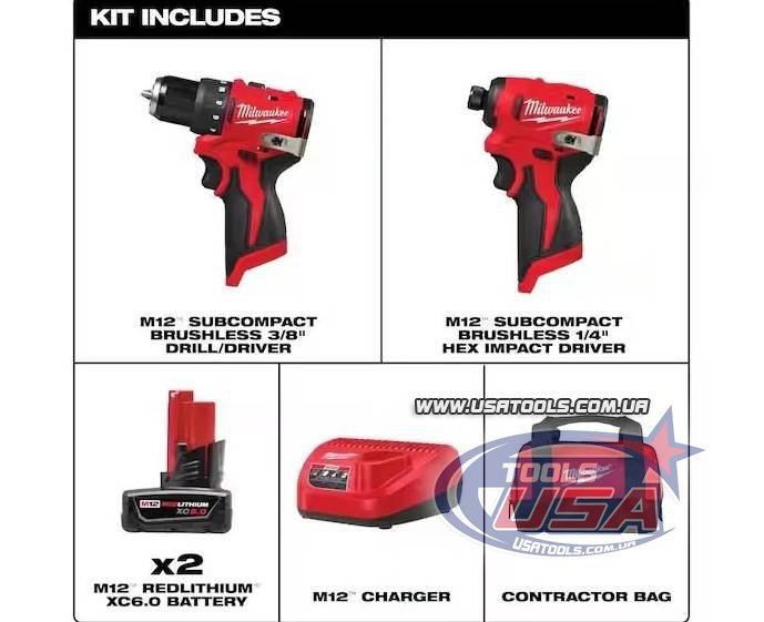 Набір безщіткових шурупокрутів 2 в 1 Subcompact M12 (6.0 + 6.0 Аг) Milwaukee 3494-22XC